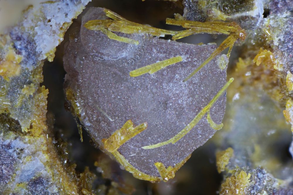 - As analysed specimens of yellow or green prismatic crystals around the edges of quartz xenoliths at Mount Anakie and Mount Shadwell, Victoria.