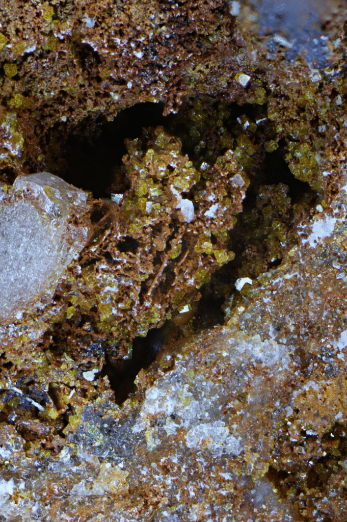 Bariopharmacosiderite is a rare arsenate species that occurs as greenish, greenish-yellow or brown cubes. It is impossible to visually distinguish from pharmacosiderite.