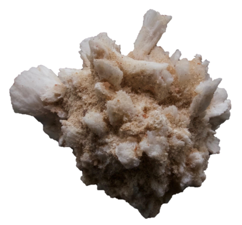 Bassanite is a sulphate that occurs as white radiating clusters of crystals, sometimes as pseudomorphs after gypsum, in dry lake beds. It could be more common than reported, but overlooked.